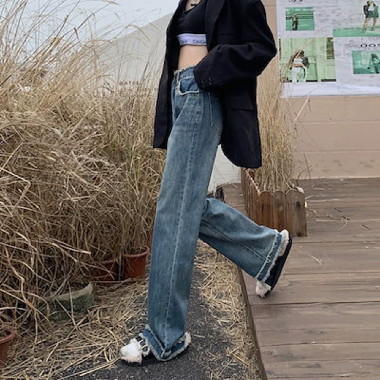 2024春夏 新作 レトロ 着痩せ デニムパンツ ハイウエスト 流行り ワイドパンツ 気質スラックスパンツ 韓国ファッション スキニーパンツ 脚長効果! ひんやりボトムス