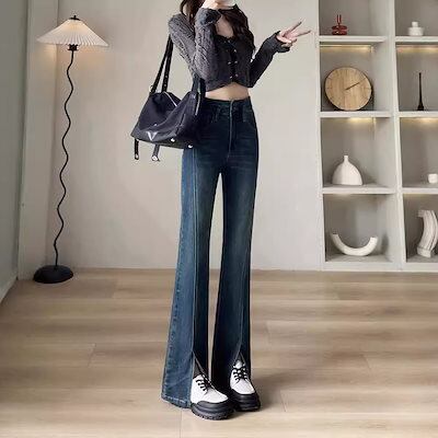 腰の高いマイクロスピーカーの前にジーンズの女性秋の女装の新製品は足にくっつかないで痩せているマイクロスピーカーのズボン