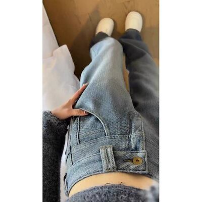 星空紋広脚高腰ジーンズ女性冬の新商品ゆるい百合女性直筒垂感モップズボン