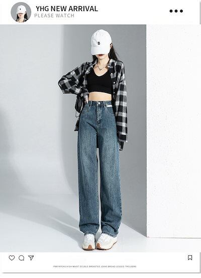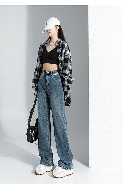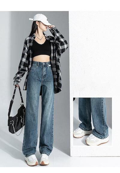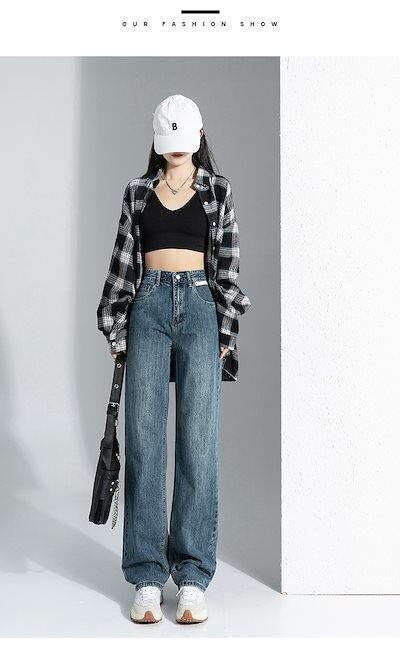 2023新作!デニムパンツ レディース 大きいサイズ 春秋 ストレートパンツ 女の子 ハイウエスト 体型カバー ワイドパンツ ロング ポケットあり ロングパンツ ストレート ゆったり ポケット付