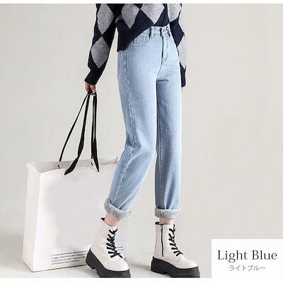 裏起毛 デニムパンツ ストレート ロング丈 韓国ファッション レディース 新作 春 夏 秋 冬 ブラック ダークグレー ライトブルー ブルー グレイッシュブルー S M L XL JOCOSA 911