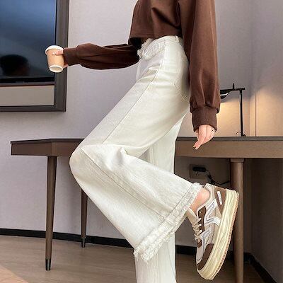 新作 ガウチョパンツ ハイウエスト 着痩せ ワイドパンツデニム ゆとりがある やせて見える 垂下感 ストレートパンツ ワイドパンツ レディース