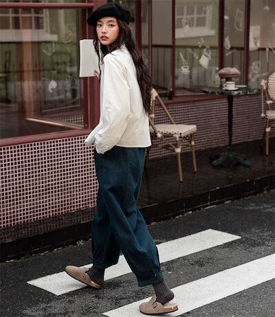 新作 デニムパンツ レディース イージーワイドパンツ ボトムス パンツ ウエストゴム 美脚 レトロ リラックス 無地 ガウチョ ポケット付 パンツ バルーン カジュ