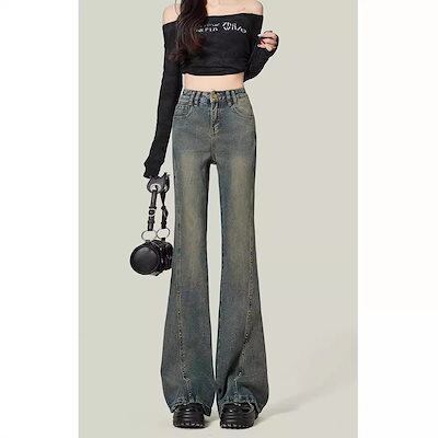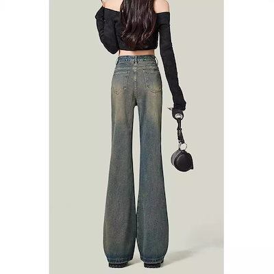 本日限定パンツ レディース フリルバックリボンデニムパンツ デニムパンツリボン ストレート ワイドレッグデニム 大人可愛い ママコーデ 韓国 オルチャン 人気 トレンド 新作