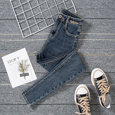 【3日以内出荷】脚長効果!スキニーデニムパンツブルーグレージーンズクロップドパンツ2023春秋新作刺繍ハイウエストスリムパンツレディース 韓国ファッション