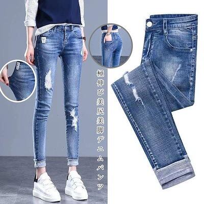 レディースパンツ美脚デニムパンツスキニーズボン極伸び美尻美脚スキニーデニムパンツナインポイントペンシルハイウエストスキニージーンズサロペット春秋新作韓国版は薄手のストレッチスリムパンツ
