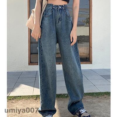 人気 デニムパンツ レディース ワイドパンツ ガウチョパンツ カジュアル ジーンズ ロング丈 オシャレ ストレート ハイウエスト 体型カバー 新作 コーデ