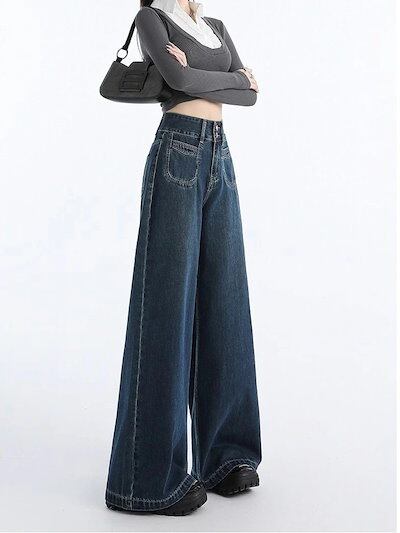 デニム ワイドパンツ レディース 春 新作 ゆるい カジュアル ストレート ワイドパンツ
