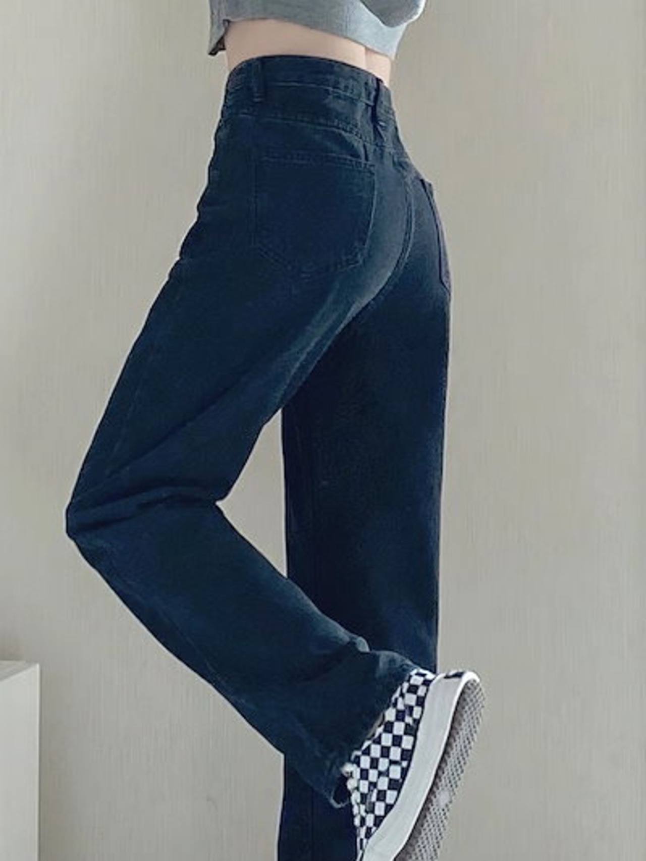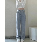 人気スラックスパンツ ブラックストレートジーンズ レディース 2025年春新作 ドレープワイドレッグ