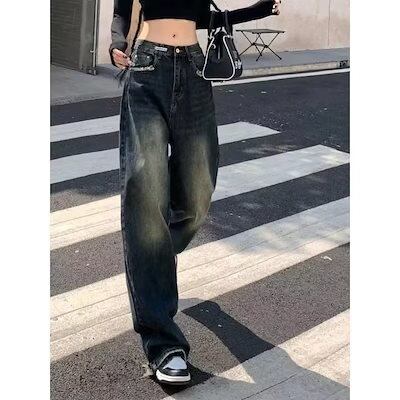 デニム レトロ ジーンズ レディース 春 新作 着痩せ モップパンツ ワイドパンツ
