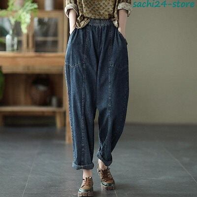 新作 サルエルパンツ レディース デニムパンツ サーカスパンツ ウエストゴム ボトムス ガウチョ ワイドパンツ 体型カバー ゆったり カジュアル