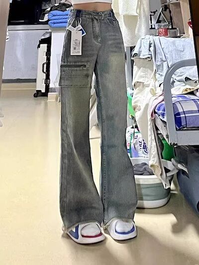 デニムレトロなデザイン感ジーンズレディース春秋の新作ハイウエストゆったりスリムストレートワイドパンツ