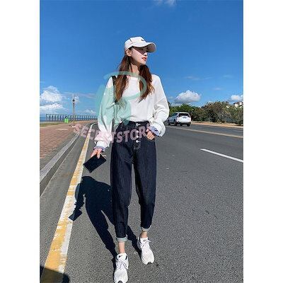 人気の新作,デニムパンツ サルエルパンツ レディース ジーンズ テーパード ロング ハイウエスト ボ ガチョウ ストレート 美脚 ゆったり レトロ ギャザー