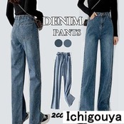 【新作入荷】デニムパンツ ジーンズ パンツ ロングパンツ ハイウエスト バギーパンツ レディース ズボン ボトムス ファッション きれいめ シンプル