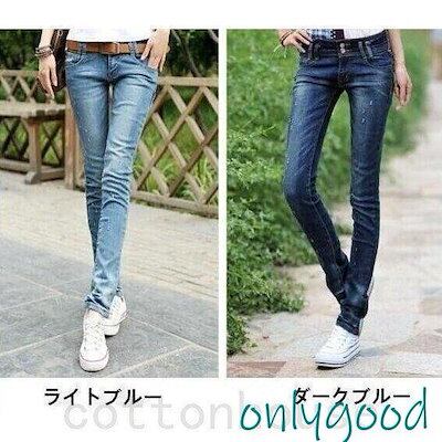 スキニーパンツ レディース デニム ストレッチ ジーンズ ジーパン ダメージ加工 美脚 ローライズ レギパン デニムスキニー 着痩せ カジュアル ロング丈