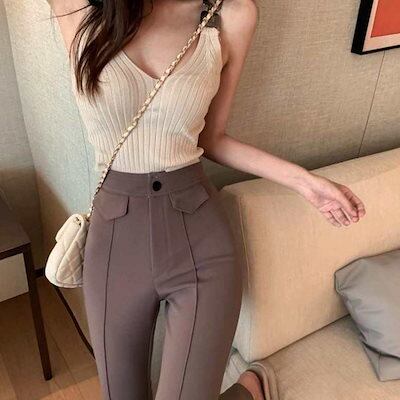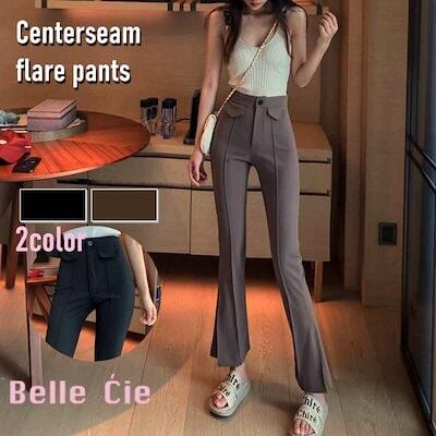 ベルシーセンターシームフレアパンツ レディース ストレッチ スリット フレアーパンツ 韓国ファッション ベルシー ボトムス