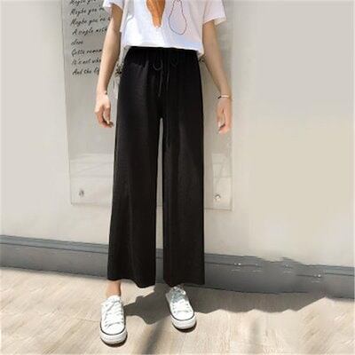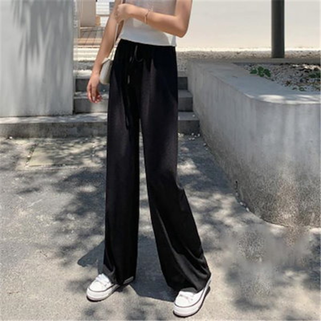 パンツ ワイドパンツ レディース ボトムス ひんやりパンツ ズボン リブ リブニット ストレッチ ルームウエア 紐付き ゆったり 秋物 通勤 OL