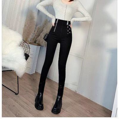 スキニーパンツ ハイウエスト ストレッチ ボトムパンツ レディース ジッパー スモールレッグ 薄手 ペンシルパンツ パッド入り