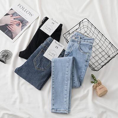 デニムパンツ 2024 秋 明るい色 ジーンズ レディース ストレッチ 9分丈パンツ 新しいスタイル スリム タイト