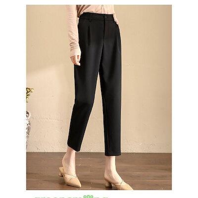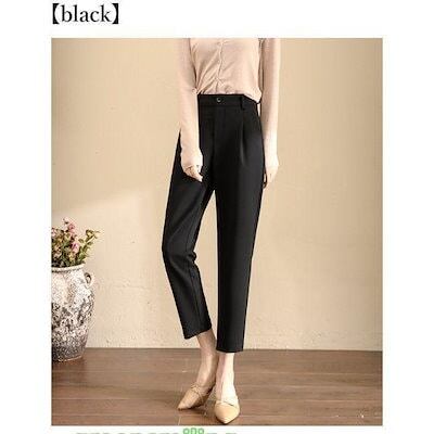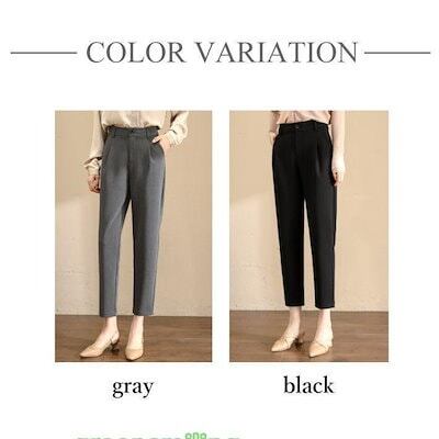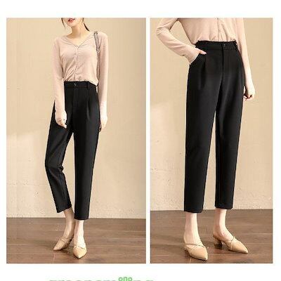 新しい夏のスタイル ベーシック スラックス タック パンツ アンクル丈 無地 上品 きれいめ オフィス 事務服 / レディース ボトムス 清楚 ド ハイウエスト ロング