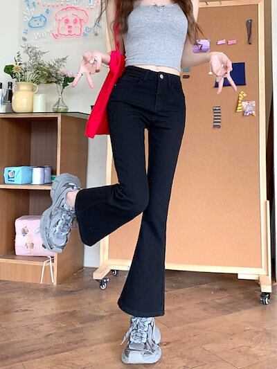 2024春夏パンツ デニム ジーンズ クロップド丈 アンクル丈 ワイドレッグ ハイウエスト 美脚効果 脚長効果 細見え 夏 黒 おしゃれ かわいい 韓国ファッション レディース お出かけ