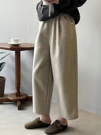 ガウチョパンツ ワイドパンツ レディース 秋 冬 九分丈 ロングパンツ ワイドパンツ アンクルパンツ フレアパンツ ポケット付き ボリューム ウエストゴム 暖かい 厚手 美脚 細見え 通勤 カジュアル