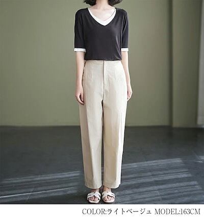 テーパードパンツ レディース 春 夏 アンクル丈 美脚 ハイウェスト バックゴム 脚長効果 ロングパンツ ウエストゴム 楽ちん ボトムス 無地 通勤 OL キレイめ フォーマル 綿