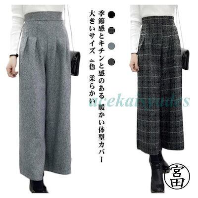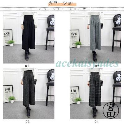 ワイドパンツ レディース 冬 パンツ 秋冬 暖かい ボリューム ゆったり 体型カバー アンクルパンツ 大きいサイズ 通勤 無地 OL 韓国風 ブラック