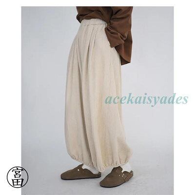 バルーンパンツ パンツ レディース サルエルパンツ ロング丈パンツ ワイドパンツ コーデュロイ アンクルパンツ 秋冬 ポケット付き ワイドパンツ ボリェーム感 ワ