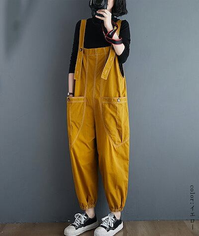 大人 サロペット パンツ レディース きれいめ ゆったり バルーンパンツ 丸い 大人可愛い アンクルパンツ 九分丈 ポケット ボタン コクーンパンツ 大きいサイズ 体型カバー 着痩せ サルエルパンツ