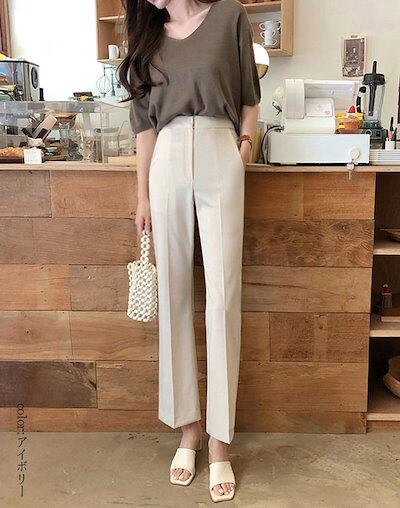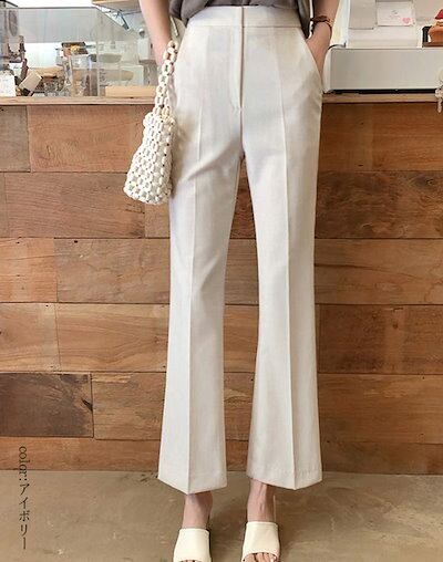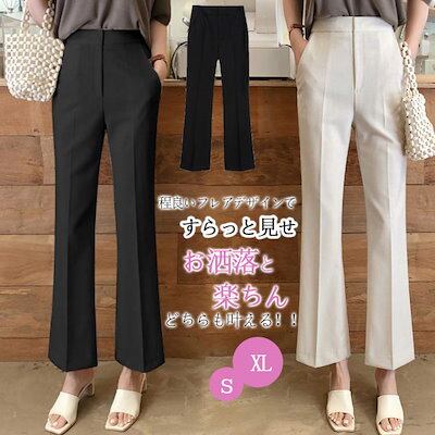 フレアパンツ レディース 春秋 セミフレアパンツ ロング ハイウェスト センターフレス アンクルパンツ 長ズボン セミフレア 美脚 着痩せ ハイウェストパンツ 脚長効果 無地 カジュアル シンプル パ