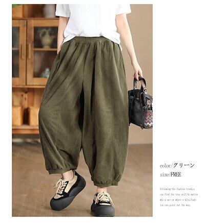 バルーンパンツ レディース 50代 コーデュロイ パンツ ブラック アンクル コットン 綿 コーデュロイパンツ 大きいサイズ ゆったり バルーン ボトムス コクーンパンツ ゆったり 体型カバー サルエ