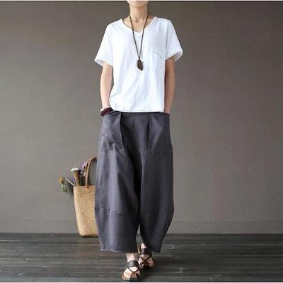 リネン パンツ レディース 涼しい バルーンパンツ アンクル サルエルパンツ 綿麻 イージーパンツ リネン コットン ワイドパンツ 体型カバー ボトムス 森ガール ズボン ゆったり 薄手 リラックス