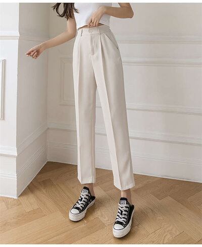 テーパードパンツ パンツ レディース ハイウエスト タック テーパード パンツ ゆったり 上品 清楚 カジュアル アンクル丈 ボトムス ワイドパンツ きれいめ スラックス オフィスカジュアル 大人可愛
