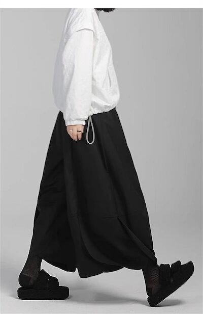 パンツ レディース サルエルパンツ ロング丈パンツ ボリェーム感 ウエストゴム アンクルパンツ サイドポケット ハイウエスト ハロンパンツ ウエストゴム 長ズボ