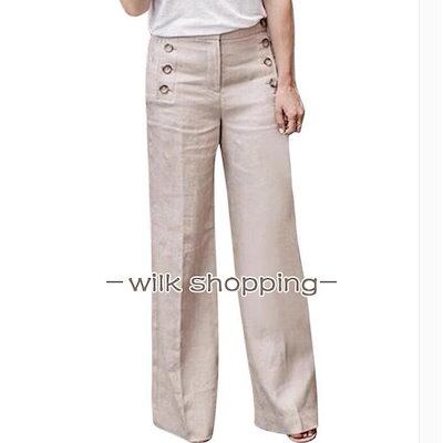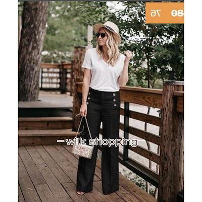 ワイドパンツ レディース きれいめ 春 9分丈 アンクルパンツ ハイウエスト フロントボタン ガウチョパンツ カジュアル ボトムス