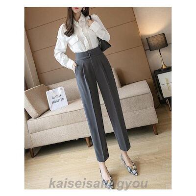 ハイウエスト スラックス アンクル パンツ タック 無地 上品 きれいめ オフィス 事務服 / レディース ボトムス 清楚 ド テーパード 大きいサイ