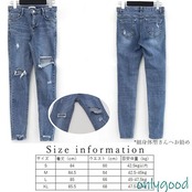 ダメージ スキニー レディース デニムパンツ タイト ジーンズ アンクル クラッシュデニム 穴開き ボトムス 美脚 ジーパン