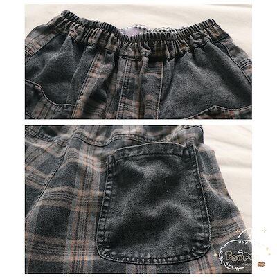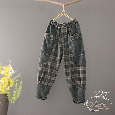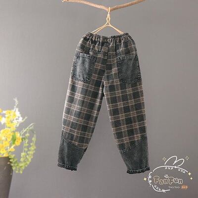 ジーンズ チェック柄 サルエルパンツ 秋 ロングパンツ アンクルパンツ デニム ウォッシュ レディース