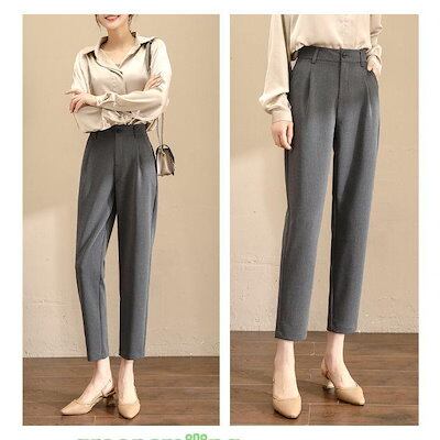 ベーシック スラックス タック パンツ アンクル丈 無地 上品 きれいめ オフィス 事務服 / レディース ボトムス 清楚 ド ハイウエスト ロング