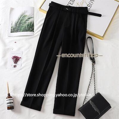 テーパードパンツ レディース ハイウエスト ベルト付き アンクル丈 九分丈 無地 シンプル 通勤 秋 コーデ