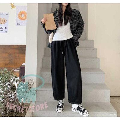 ロングパンツ チノパン レディース ゆったり ハイウエスト アンクル カジュアル ポケット付き 体型カバー 春 秋 ウエストゴム 紐 ロング 部屋着