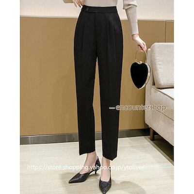 テーパードパンツ レディース ハイウエスト プリーツ アンクル丈 九分丈 無地 シンプル 通勤 コーデ 秋 ファッション