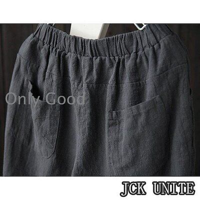 レディースサルエルパンツリネン薄手夏アンクルパンツゴムハイウエストポケット付き9分丈細身スリム無地シンプルカジュアル