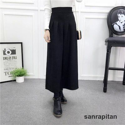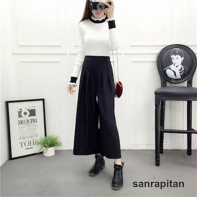 ワイドパンツ ガウチョパンツ レディース ハイウエスト アンクル丈 秋冬 厚手 ウエストゴム スカーチョ ボトムス きれいめ 体型カバー 大きいサイズ