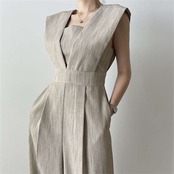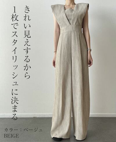 オールインワン レディース オーバーオール サロンペット ノースリーブ マキシ丈 ロング丈 春 夏 秋 パンツドレス つなぎ ワイドパンツ ロングパンツ ハイウエスト ゆったり 無地 ポケット 涼しい