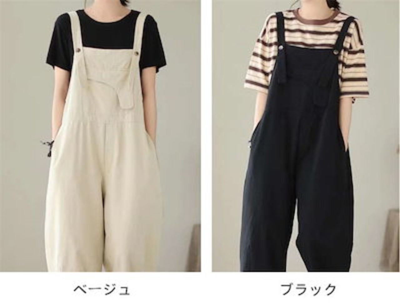 サロペット レディース ゆったり 春 夏 オールインワン つなぎ オーバーオール 大人サロペット サロペットパンツ パンツ ロング 綿 コットン 涼しい カジュアル 楽ちん 無地 ポケット付き 高見え