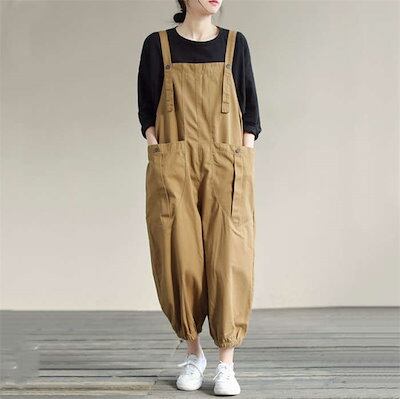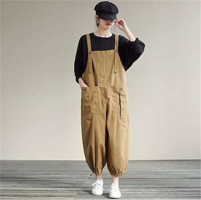 サロペット レディース ゆったり 夏 春 オールインワン 大きいサイズ つなぎ オーバーオール 大人サロペット サロペ パンツ ロングパンツ ロング カジュアル 楽 綿 コットン 無地 ポケット 涼