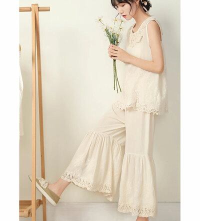 ぺチパンツ レース ロング 綿 ペチコート レディース パンツ 大きいサイズ 春夏 フレア インナーパンツ 刺繍 裾レース ロングペチパンツ 重ね着 コットン100% 綿100% 天然素材 ゆったり