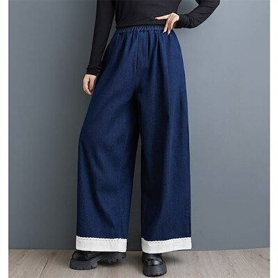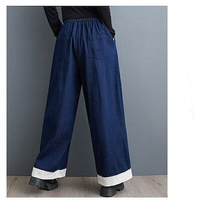 ワイドパンツ デニム レディース デニムパンツ ジーンズ ストレート パンツ ボトムス きれいめ 春 夏 秋 ワイド ゆったり ガチョウパンツ ズボン ルーズ 長ズボン ボトムス 楽ちん シンプル ゆ